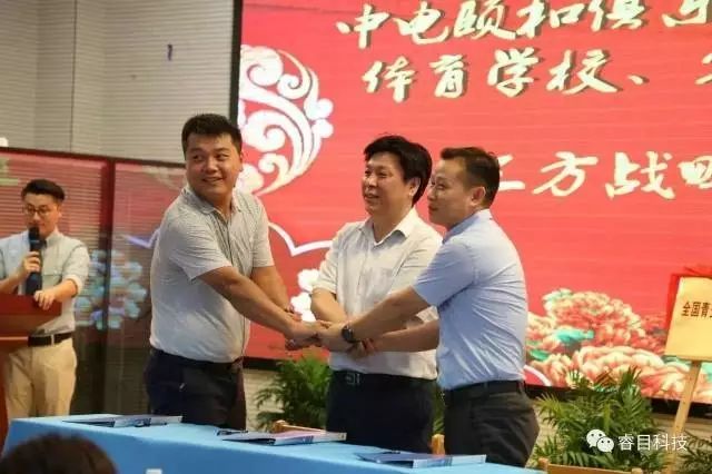 睿目科技作为中电颐和家园小学足球发展基金理事单位,也是本次活动全程赞助商,现场签署三方战略合作协议。