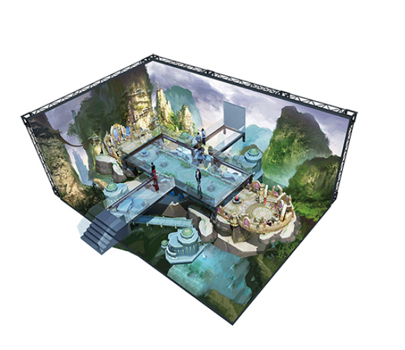 通过对多组LED屏幕运用无拼缝技术 打造成全封闭立体空间 配以动画视频、音频系统等 让观者体验前所未的空间效果